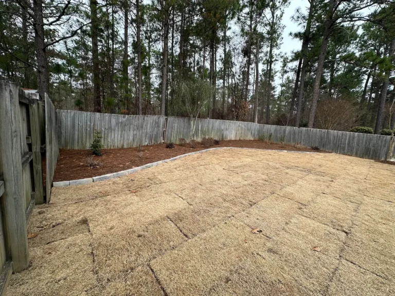 Mr. and Mrs. Lendening recently purchased a new home, which allowed for a clean slate on their landscaping! We addressed some drainage concerns – some you can see, and some you can’t see! There are underground drainage pipes we installed, as well as a dry cobble bed to coax the water off the hill into a catch basin. We created an organically shaped paver patio accented with a Bloodgood Japanese Maple which gives an excellent pop of color and promises a bit of shade as it matures. There are two focal beds created using a garden accent wall to match the color of the patio with some of Mrs. Lendnening’s favorite plants; crape myrtles and gardenia, along with some camellias for fall/winter blooms. We added that same garden accent wall to the front and a few plantings to personalize the front entry.